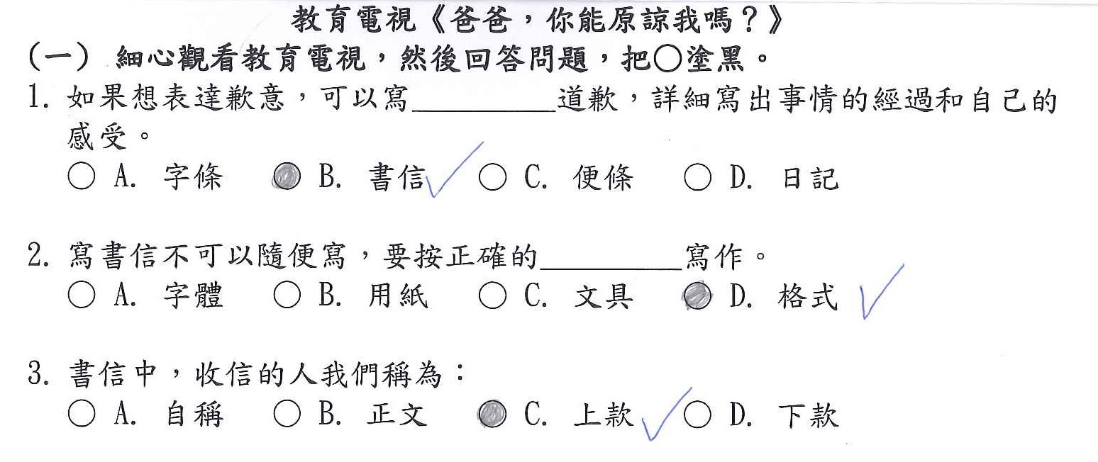 讓學生回家觀看ETV影片《爸爸, 你能原諒我嗎?」初步理解書信格式內容。