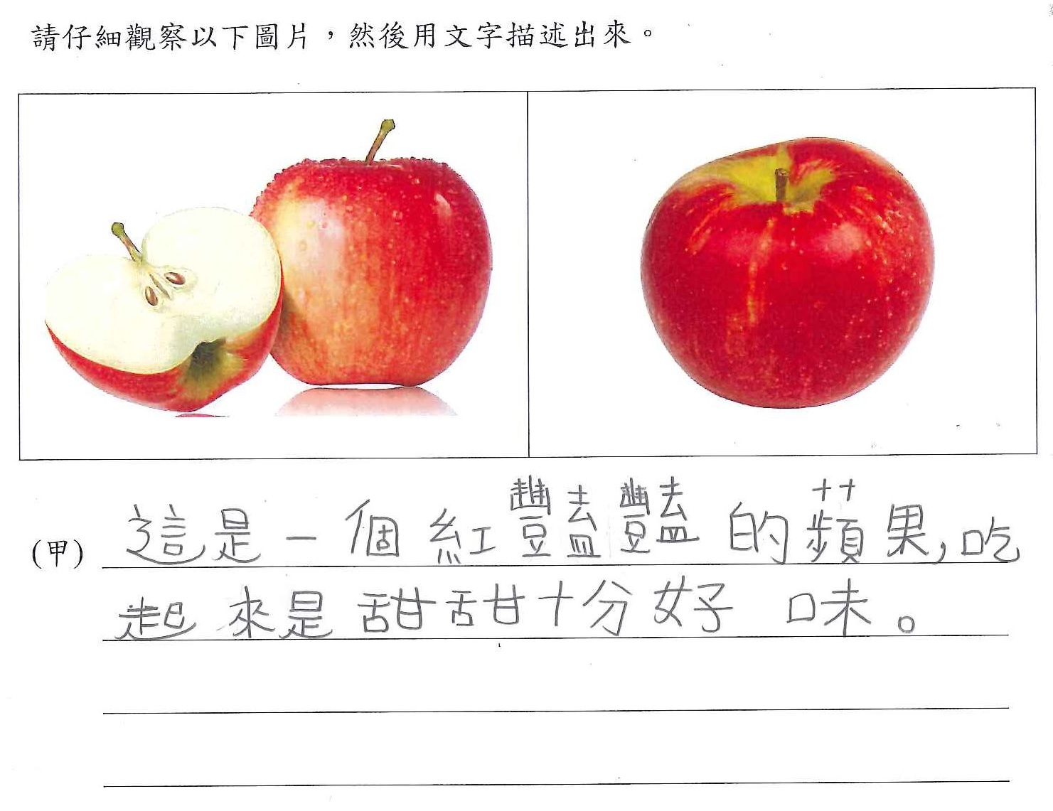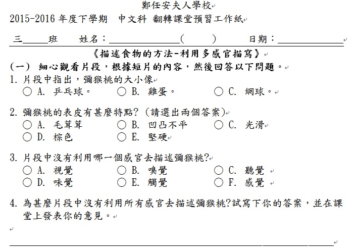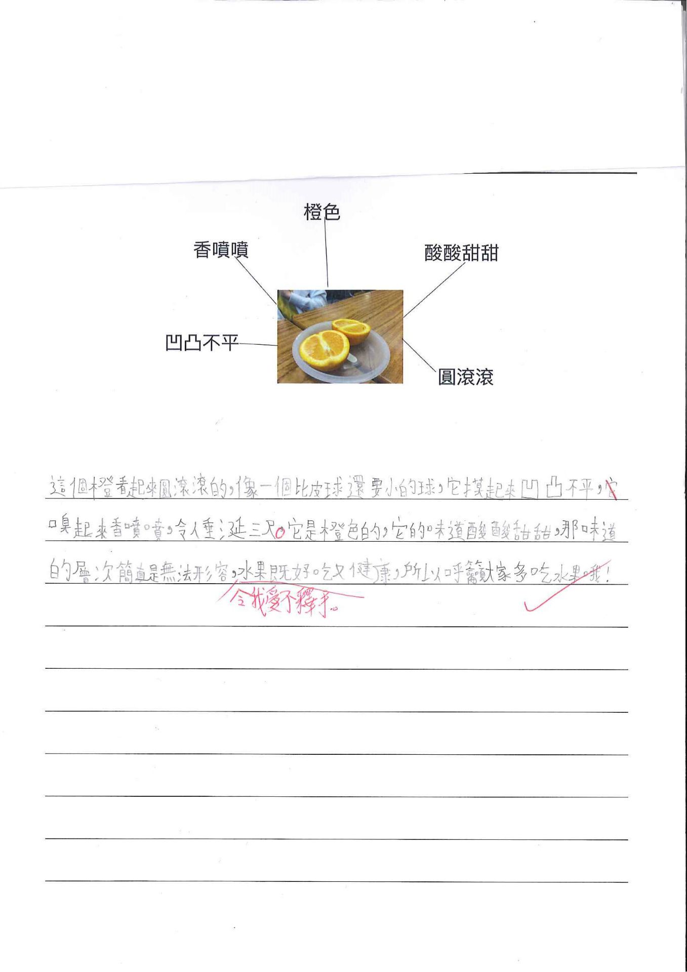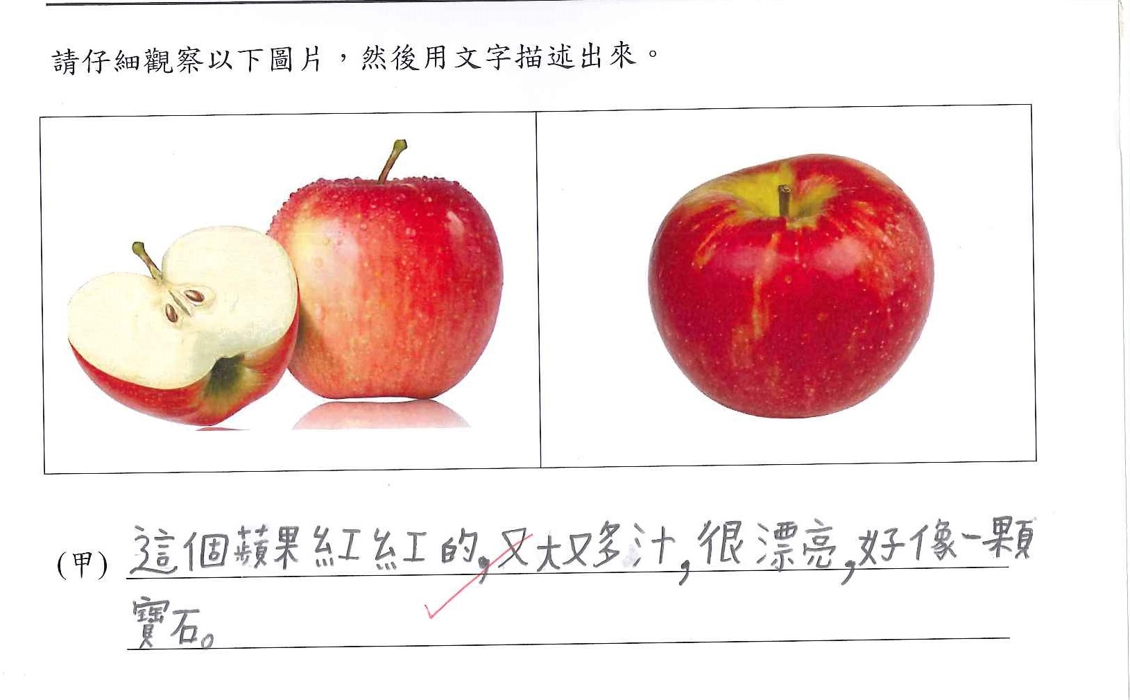 - 學生在尚未學習「多感官描寫」前嘗試為水果造句。 - 於完成課堂後以後測的形式評估學習成果