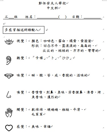 傳統面授教學: - 鞏固各種感官的運用 - 能運用豐富的詞匯配合多感官的方法描寫事物